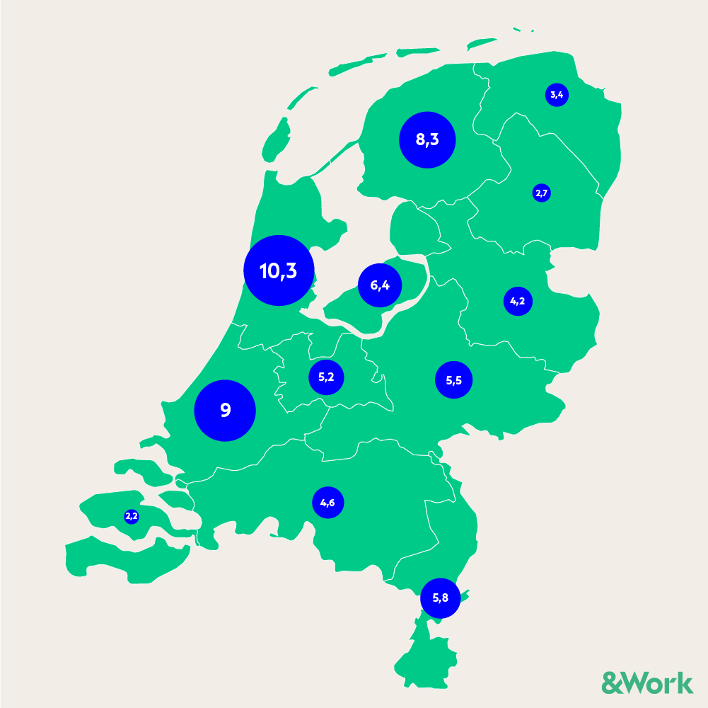 Hoewel het aantal beschikbare ICT-banen in Noord-Brabant en Utrecht vele malen hoger is dan in de meeste andere provincies, is het gemiddeld aantal kandidaten dat solliciteert op een vacature hier relatief laag. In Friesland staan bijvoorbeeld minder vacatures open, maar reageren wel meer kandidaten.