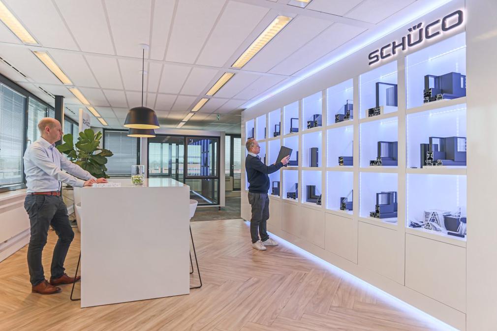 Schüco werd in 1951 in Bielefeld (Oost-Westfalen) opgericht als metaalconstructiebedrijf en ontwikkelde door tot toonaangevende aanbieder en ontwikkelaar van hoogwaardige systeemoplossingen. Denk daarbij aan ramen, deuren, vliesgevels, zonwering, schuifdeuren en nog veel meer. Collega’s werken er over de hele wereld met elkaar samen - van Vianen tot Brussel en van New York tot Abu Dhabi. Alleen al in de Benelux kun je een geweldige mix aan nationaliteiten vinden. Geen wonder dat ze aan ‘communicatie’ veel aandacht besteden; zo krijgt bijvoorbeeld elke nieuwe medewerker in Nederland een communicatietraining (PCM-training) om zo goed mogelijk samen te werken. Communicatie is overigens ook extern een belangrijk speerpunt. Schüco is namelijk tijdens het gehele proces betrokken: van het eerste idee, het ontwerp, de planning, het testen en de productie tot en met de montageondersteuning op de bouwplaats. Daarbij denken ze ook mee over het gebruik van machines voor een rationele productie en hebben ze een duurzame visie ten aanzien van recycling.